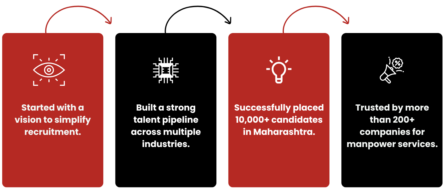 Since 2011, we have been one of Maharashtra’s most trusted recruitment and staffing partners. Headquartered in Nashik, we specialize in connecting talented individuals with leading organizations across banking, finance, call centers, back office, office administration, and security services.